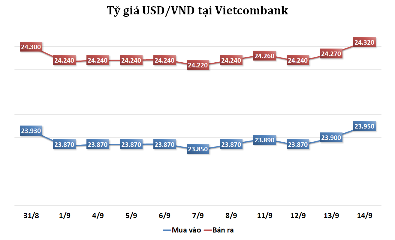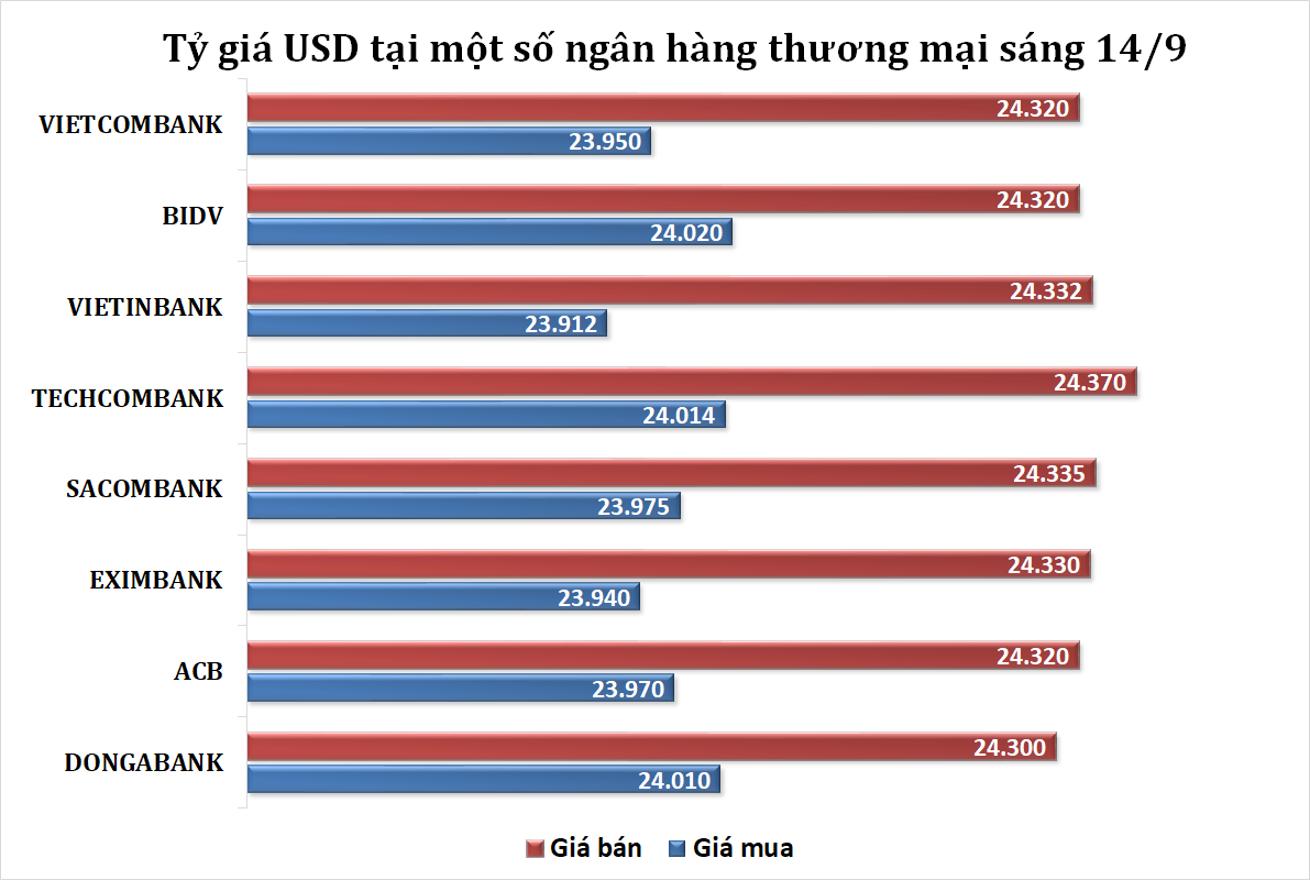 Tỷ giá sáng 14/9: Tỷ giá trung tâm tăng 18 đồng