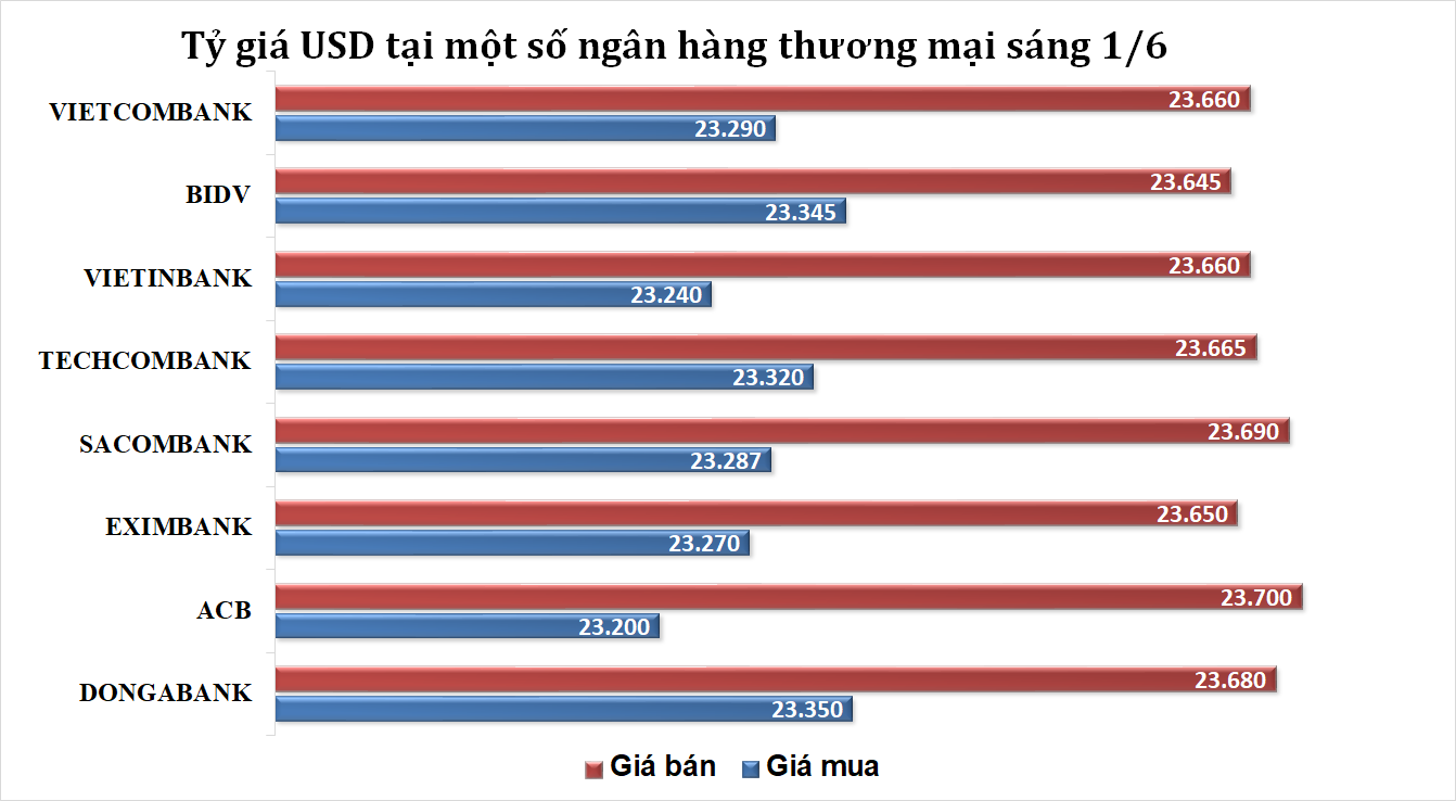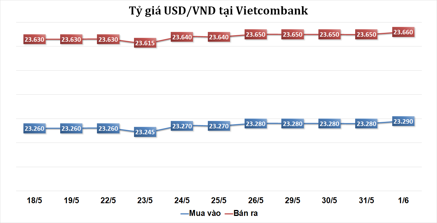 Tỷ giá sáng 1/6: Tỷ giá trung tâm tăng 15 đồng