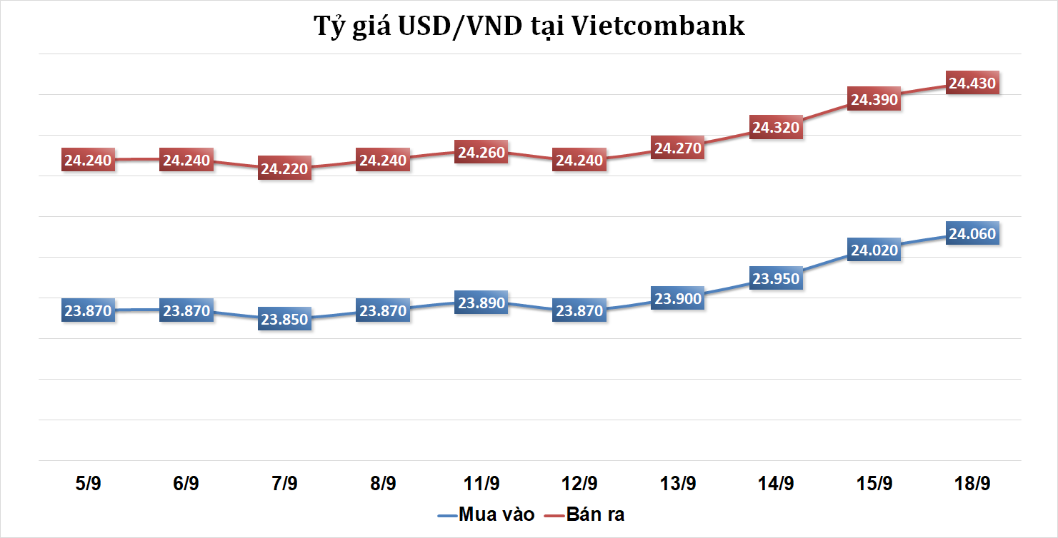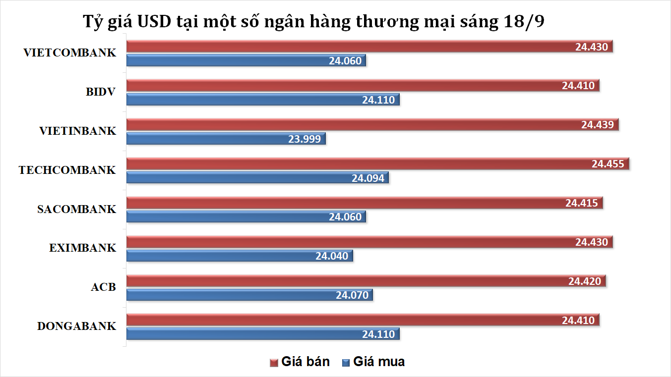 Tỷ giá sáng 18/9: Tỷ giá trung tâm tăng phiên đầu tuần
