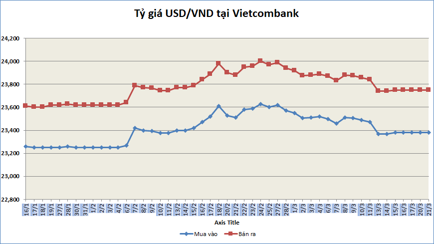 Tỷ giá sáng 21/3: Tỷ giá trung tâm tiếp tục giảm nhẹ 2 đồng