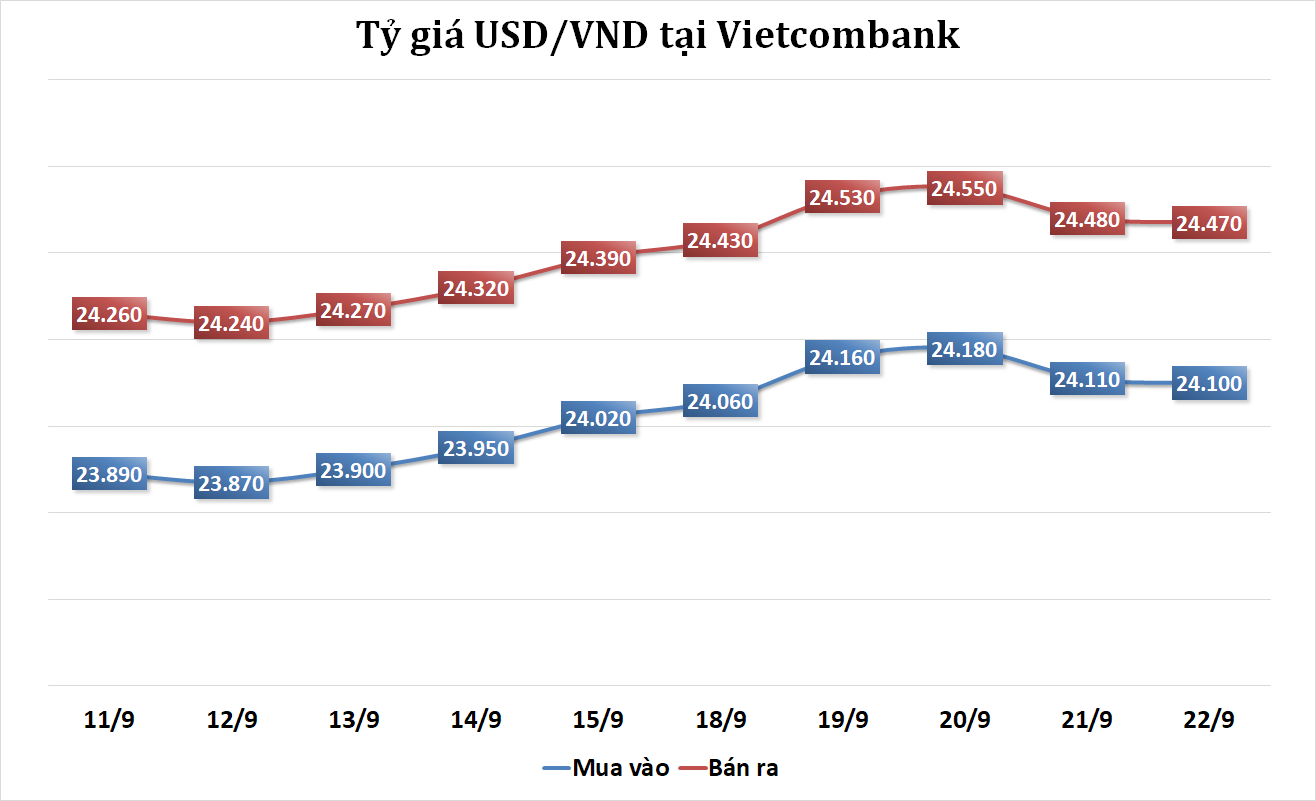 Tỷ giá sáng 22/9: Tỷ giá trung tâm giảm phiên thứ hai liên tiếp