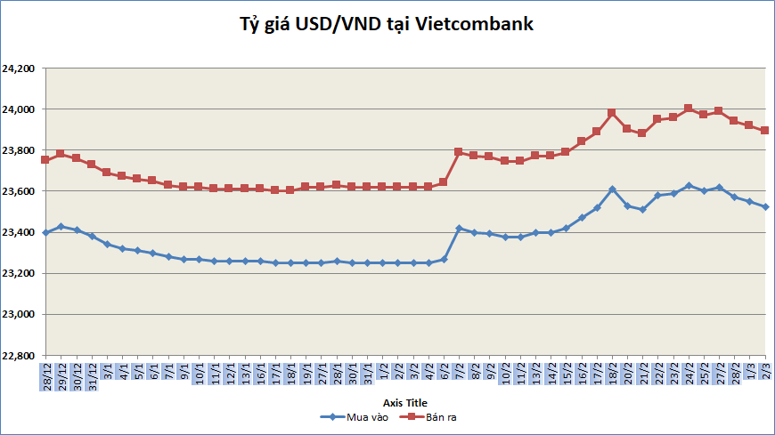 | Tỷ giá sáng 1/3: Tỷ giá trung tâm giảm nhẹ 1 đồng |