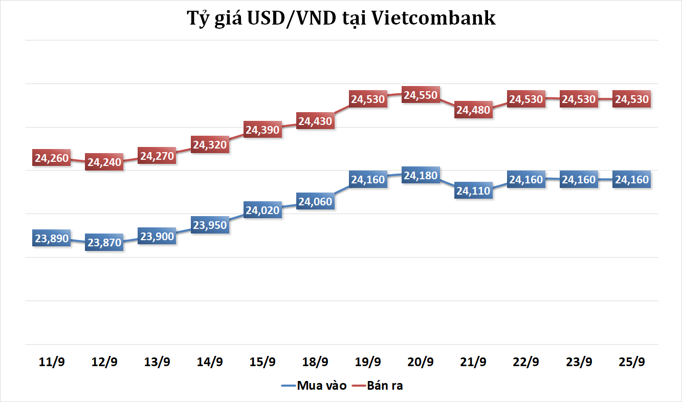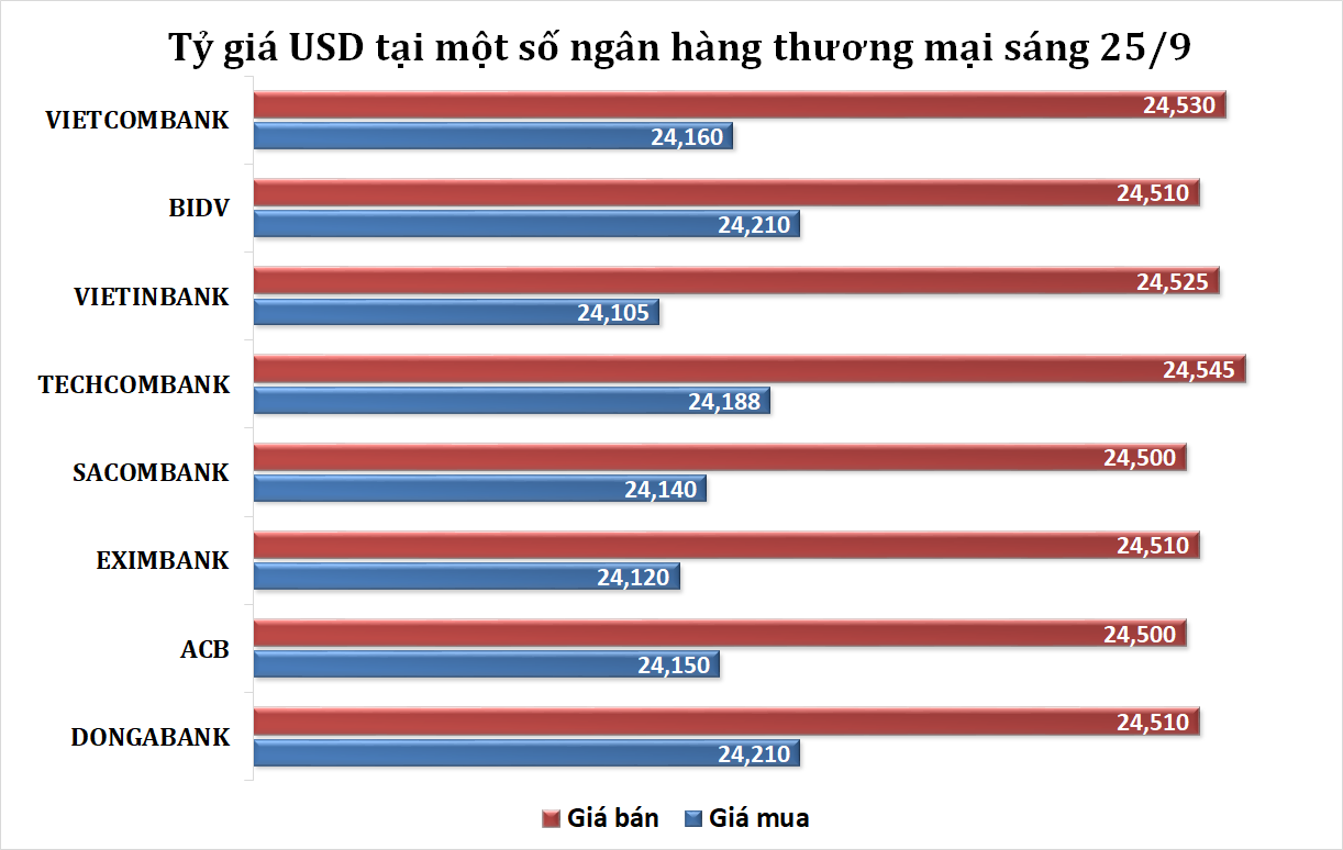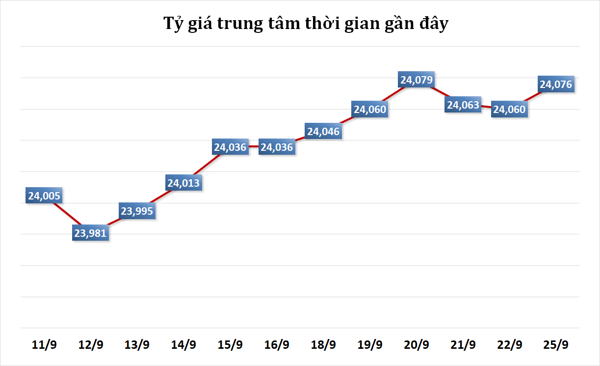 Tỷ giá sáng 25/9: Tỷ giá trung tâm tăng 16 đồng