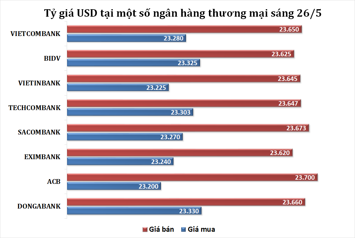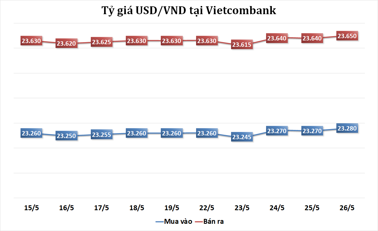 Tỷ giá sáng 26/5: Tỷ giá trung tâm tăng phiên thứ 3 liên tiếp