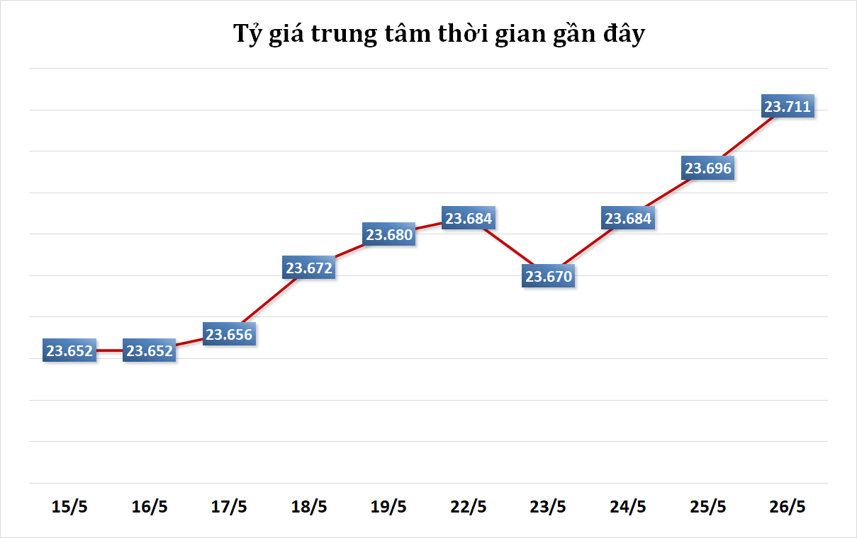 Như vậy, với 3 phiên tăng liên tiếp, tỷ giá trung tâm đã tăng tổng cộng 41 đồng.