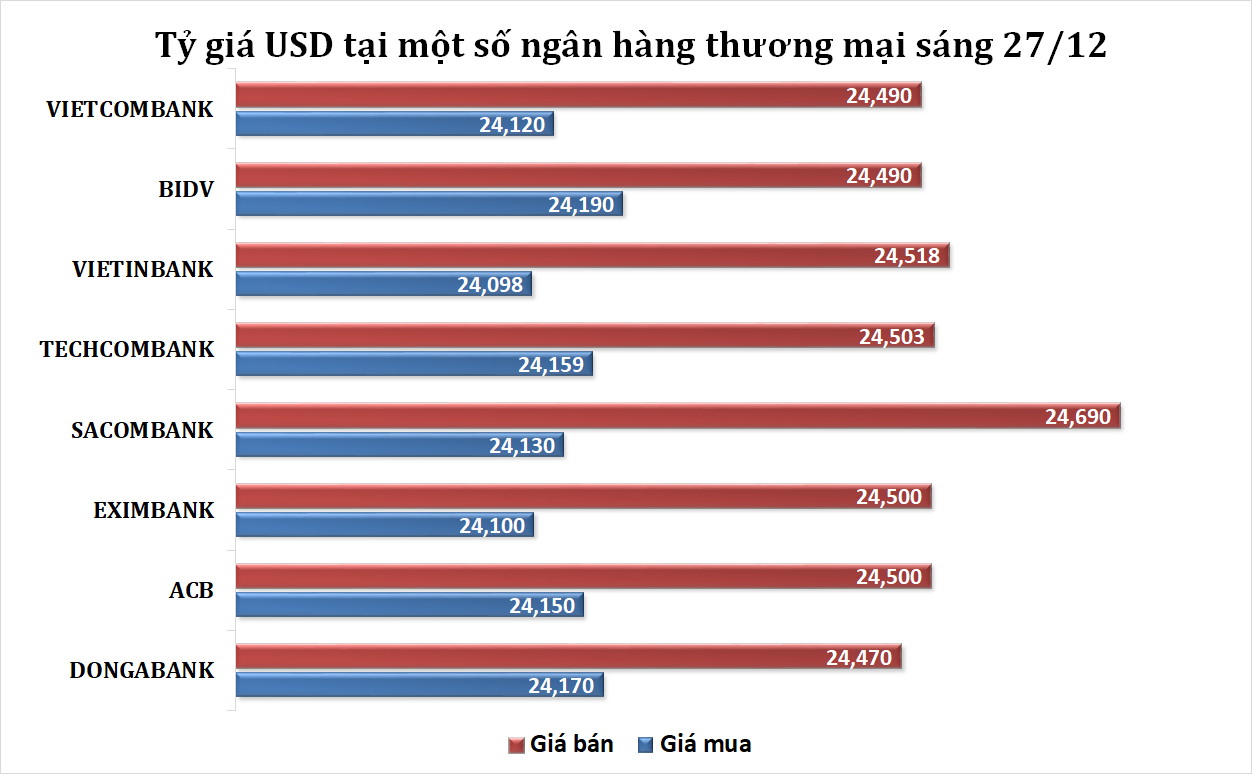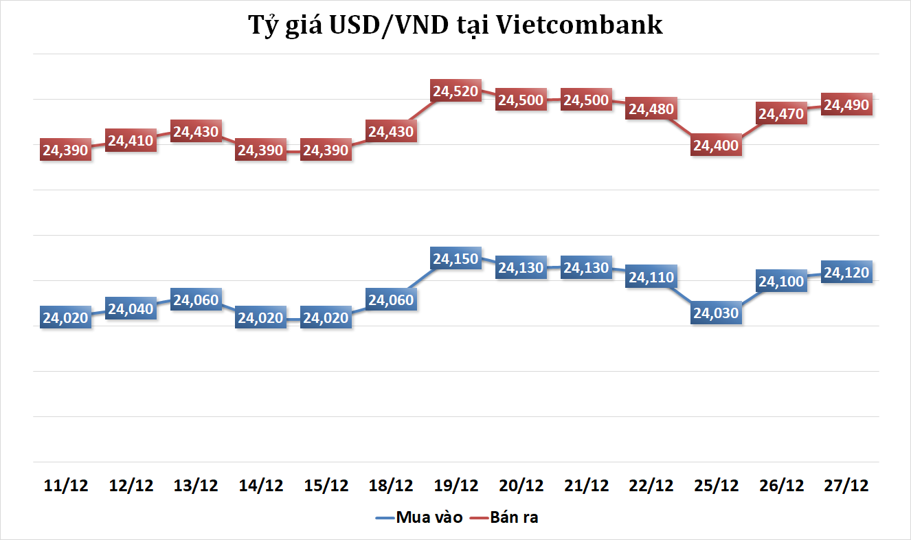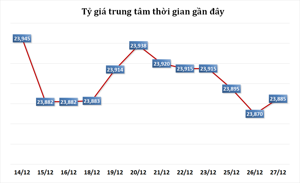 Tỷ giá sáng 27/12: Tỷ giá trung tâm tăng 15 đồng
