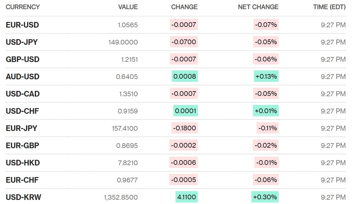 Đồng USD giao dịch gần mức cao nhất trong 10 tháng khi lợi suất trái phiếu kho bạc Mỹ tiếp tục tăng do triển vọng lãi suất của Mỹ “cao hơn trong thời gian dài hơn”.