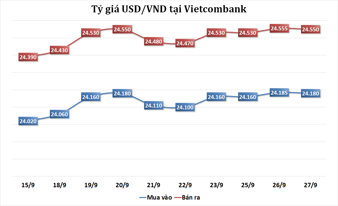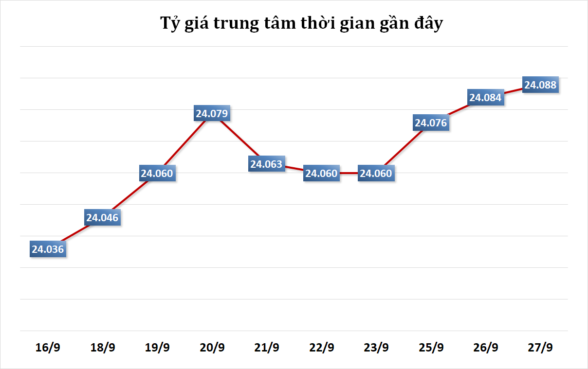 Tỷ giá sáng 27/9: Tỷ giá trung tâm tiếp tục nhích nhẹ