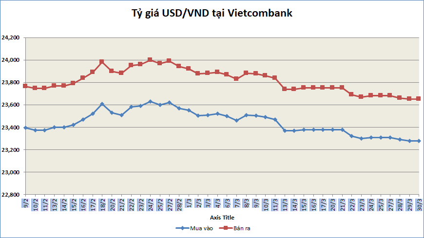 Tỷ giá sáng 30/3: Tỷ giá trung tâm đi ngang