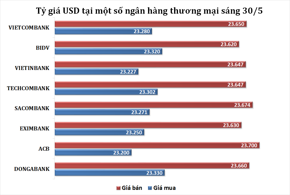 Tỷ giá sáng 30/5: Tỷ giá trung tâm tăng 2 đồng