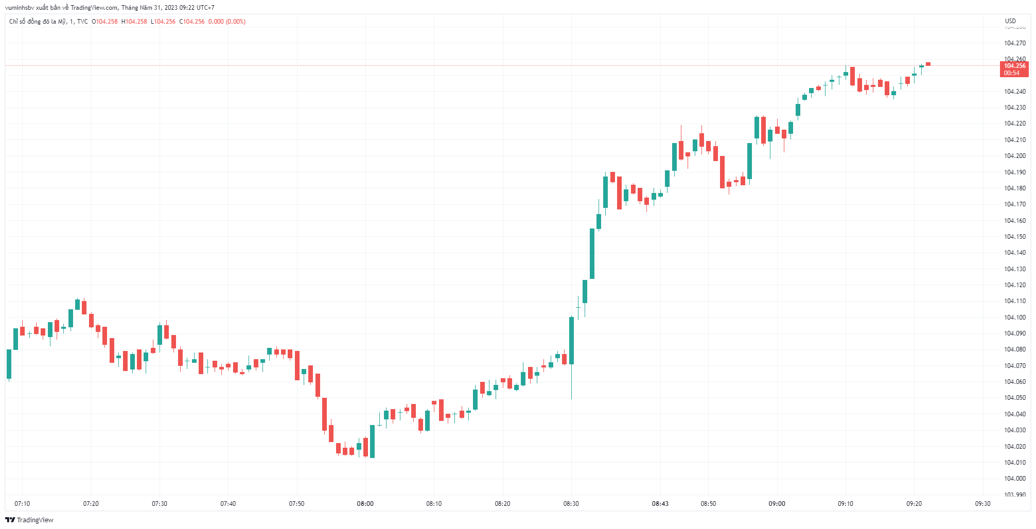 Chỉ số đô la Mỹ (DXY), đo lường biến động của bạc xanh so với 6 đồng tiền chủ chốt (EUR, JPY, GBP, CAD, SEK, CHF), cập nhật đến đầu giờ sáng nay theo giờ Việt Nam ở mức 104,256 điểm, tăng 0,206 điểm so với thời điểm mở cửa.