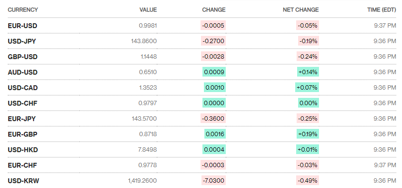 Euro sáng nay giảm nhẹ 0,05% xuống 0,9981 USD, trong khi đà tăng của bảng Anh đã chững lại và giảm 0,24% xuống còn 1,1448 USD.