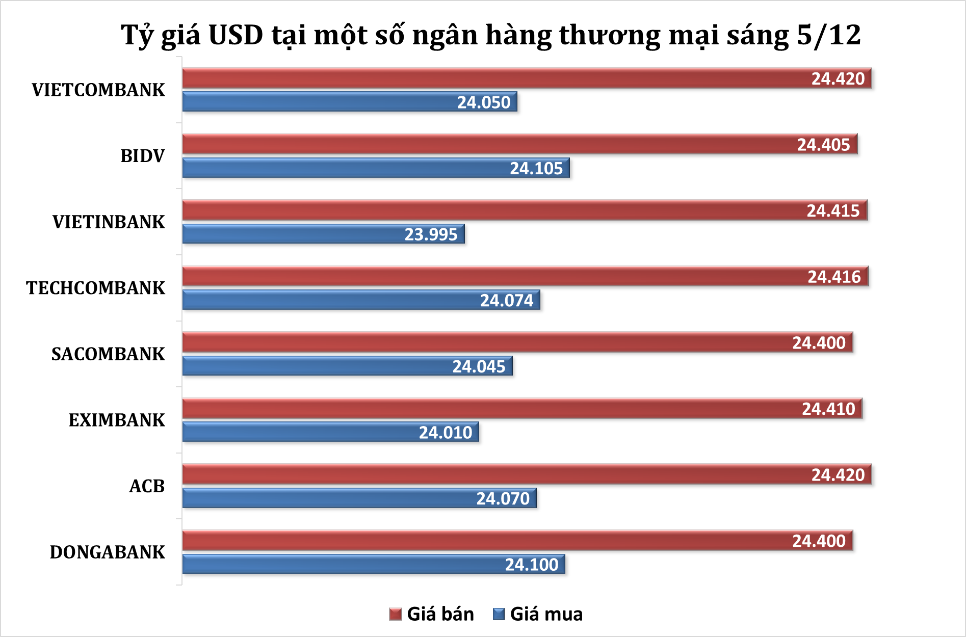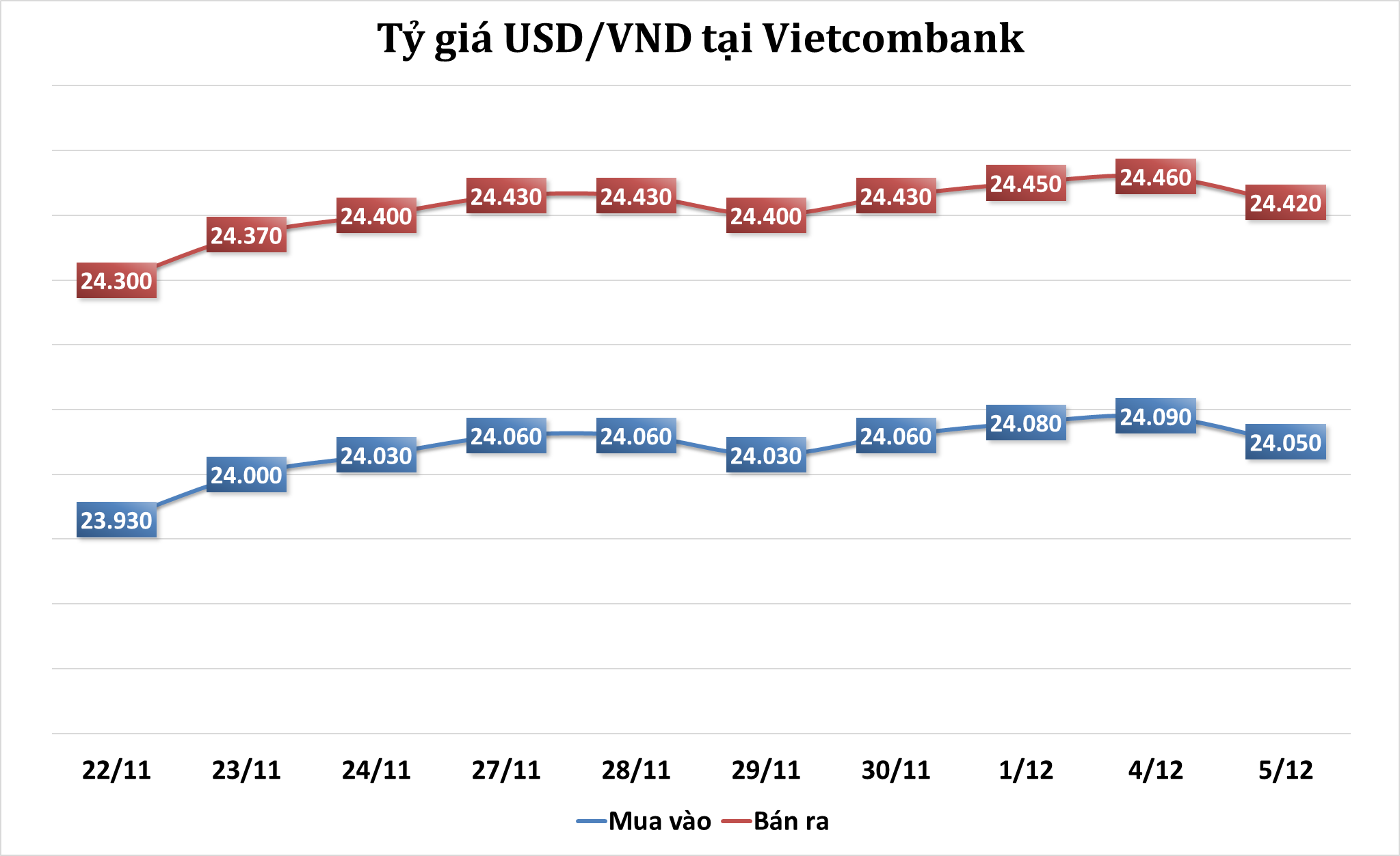 Tỷ giá sáng 5/12: Tỷ giá trung tâm giảm 13 đồng