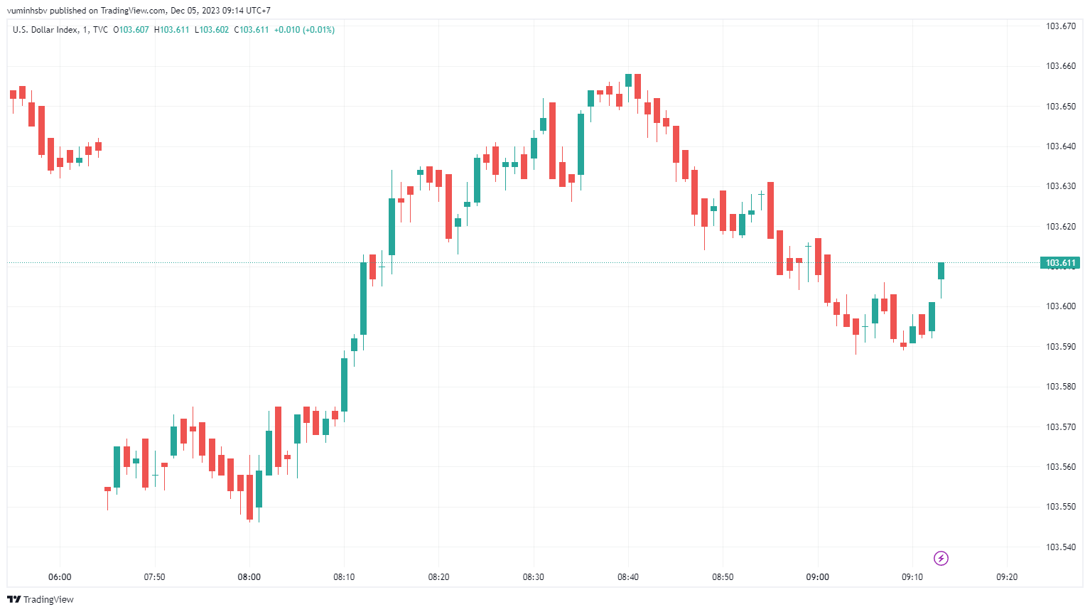 Chỉ số đô la Mỹ (DXY), đo lường biến động của bạc xanh so với 6 đồng tiền chủ chốt (EUR, JPY, GBP, CAD, SEK, CHF), hiện ở mức 103,661 điểm, tăng 0,010 điểm so với thời điểm mở cửa.