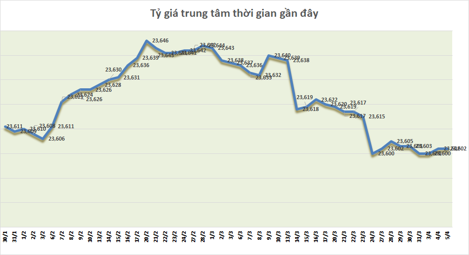 Tỷ giá sáng 5/4: Tỷ giá trung tâm đi ngang