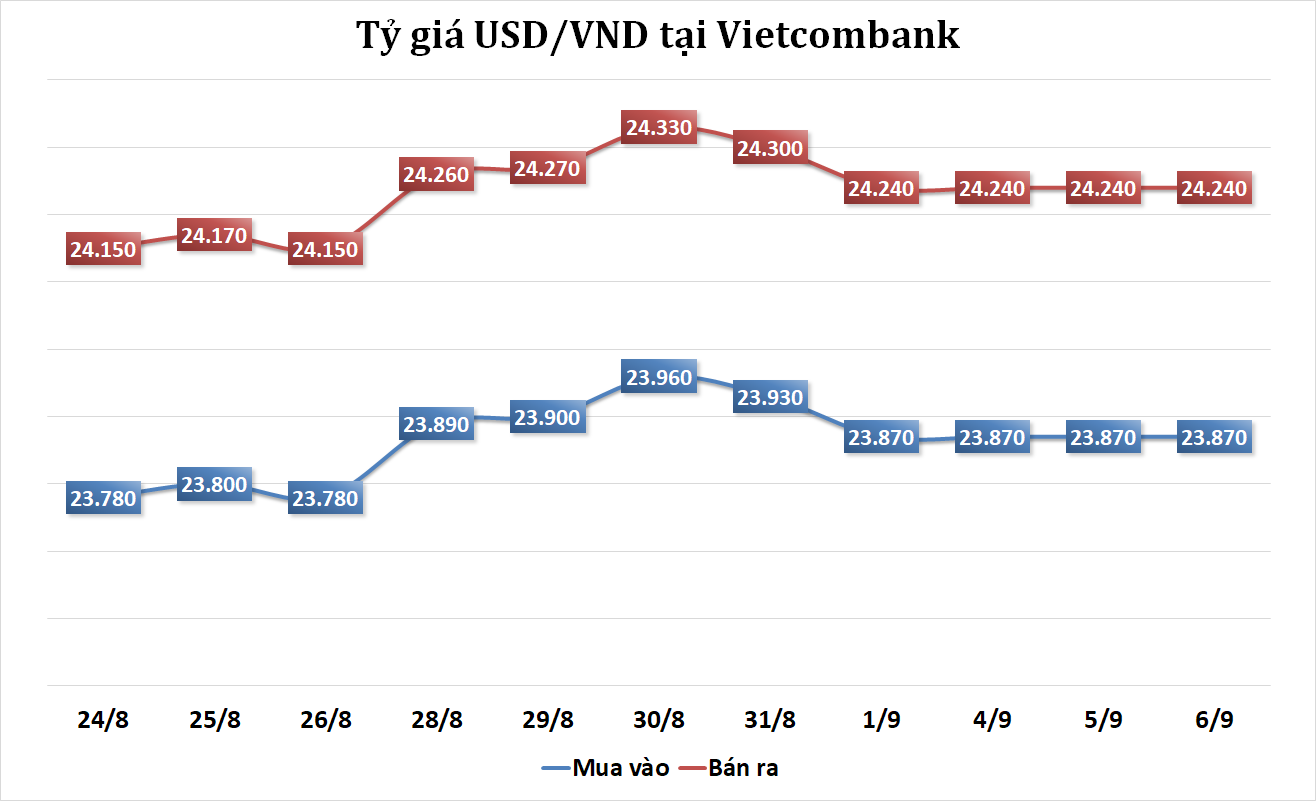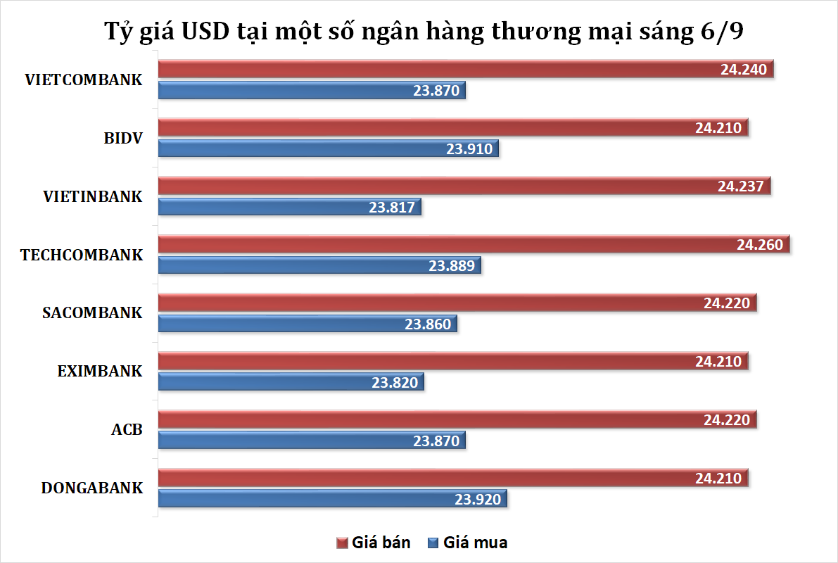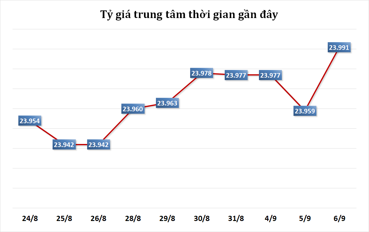 Tỷ giá sáng 6/9: Tỷ giá trung tâm được niêm yết ở mức 23.991 đồng