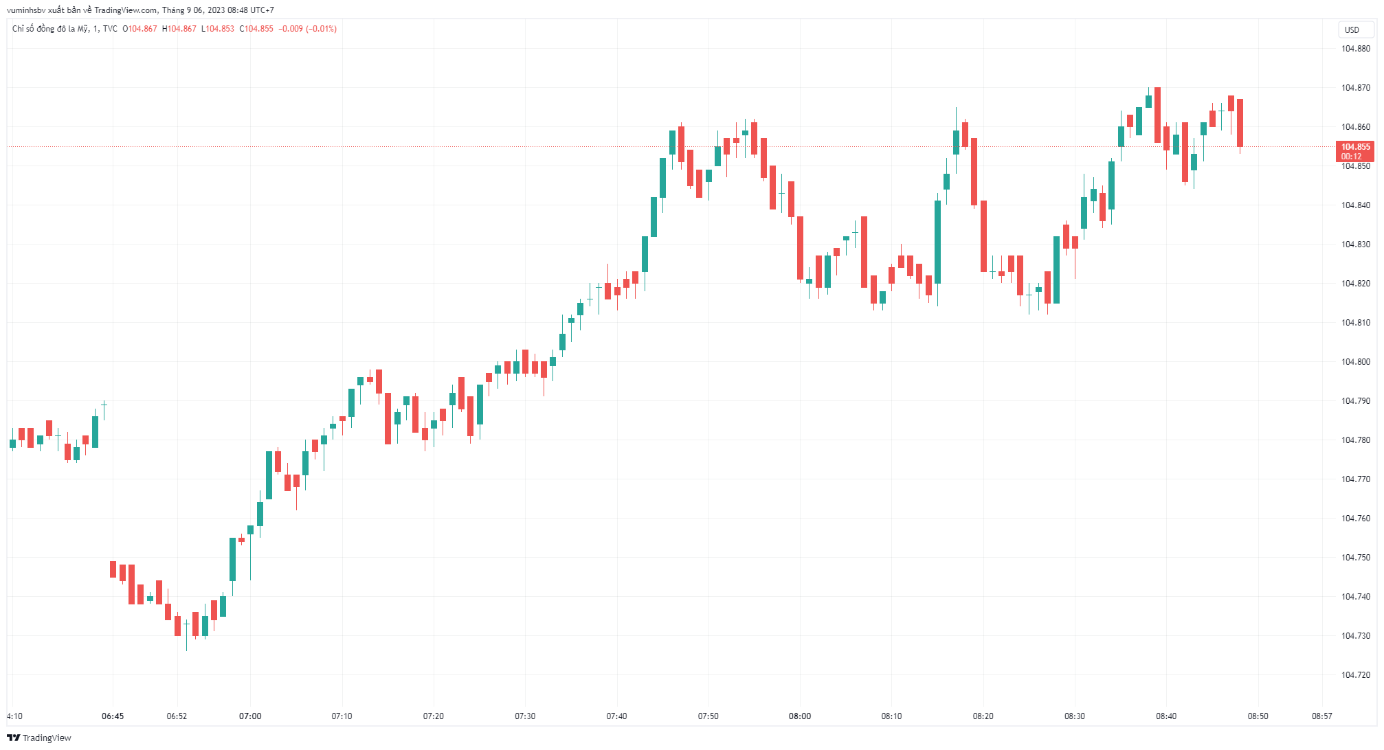 Chỉ số đô la Mỹ (DXY), đo lường biến động của bạc xanh so với 6 đồng tiền chủ chốt (EUR, JPY, GBP, CAD, SEK, CHF), hiện ở mức 104,855 điểm, giảm 0,105 điểm so với thời điểm mở cửa.