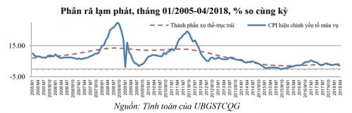 Xu thế dài hạn của lạm phát cũng có chiều hướng tăng cao hơn khoảng 0,6 điểm % so với cùng kỳ năm trước, báo hiệu CPI năm 2018 sẽ có xu thế tăng cao hơn so với năm 2017 nếu lộ trình tăng giá dịch vụ công không được kiểm soát chặt chẽ.