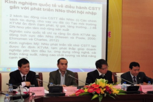 Hội thảo do Phó Thống đốc NHNN Nguyễn Đồng Tiến, Ts. Đào Minh Phúc - Tổng biên tập Tạp chí Ngân hàng, PGS. Ts. Nguyễn Hồng Sơn - Hiệu trưởng Trường Đại học Kinh tế, ĐHQGHN, Ts. Trần Quang Khánh - Chủ tịch HĐQT Ngân hàng Hợp tác xã Việt Nam đồng chủ trì. Tham dự Hội thảo có đại diện lãnh đạo và chuyên viên một số đơn vị có liên quan thuộc NHNN, NHTM, các chuyên gia kinh tế và phóng viên của các cơ quan báo chí.