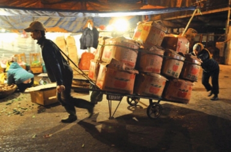 Lang thang ở khu chợ đêm Dịch Vọng, Cầu Giấy tôi thấy mấy xe rau xanh mang biển số miền Nam được một nhóm cửu vạn miệt mài khênh các sọt rau quả từ trên thùng xe xuống. Mỗi sọt rau quả nặng tới trên tạ, 2 người khênh còn ì ạch, vậy mà cả xe rau ngồn ngộn với bao nhiêu sọt, hẳn sức lực họ bỏ ra là khá nhiều!