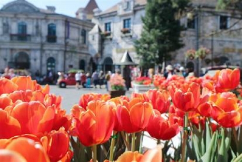 Trong cuộc thi tiên hoa ấy, có một nàng hoa lặng lẽ tỏa hương sắc rực rỡ, đó là tulip. Hơn 10.000 chậu hoa tulip được mang về Bà Nà Hills trong mùa xuân này, với đủ sắc màu, khiến không gian khu du lịch trên đỉnh núi Chúa giống như một công viên ngập tràn tulip ở xứ Hà Lan xa xôi.