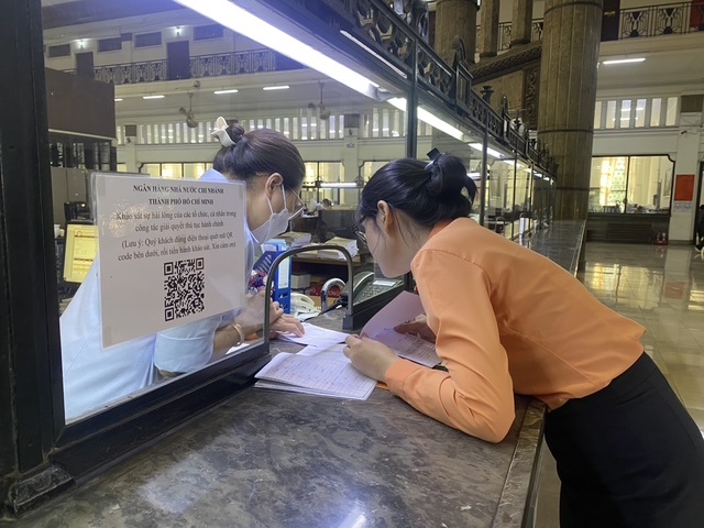 | Doanh nghiệp giao dịch tại bộ phận một cửa dịch vụ công tại Ngân hàng Nhà nước chi nhánh Khu vực 2 - Ảnh: Đình Hải |