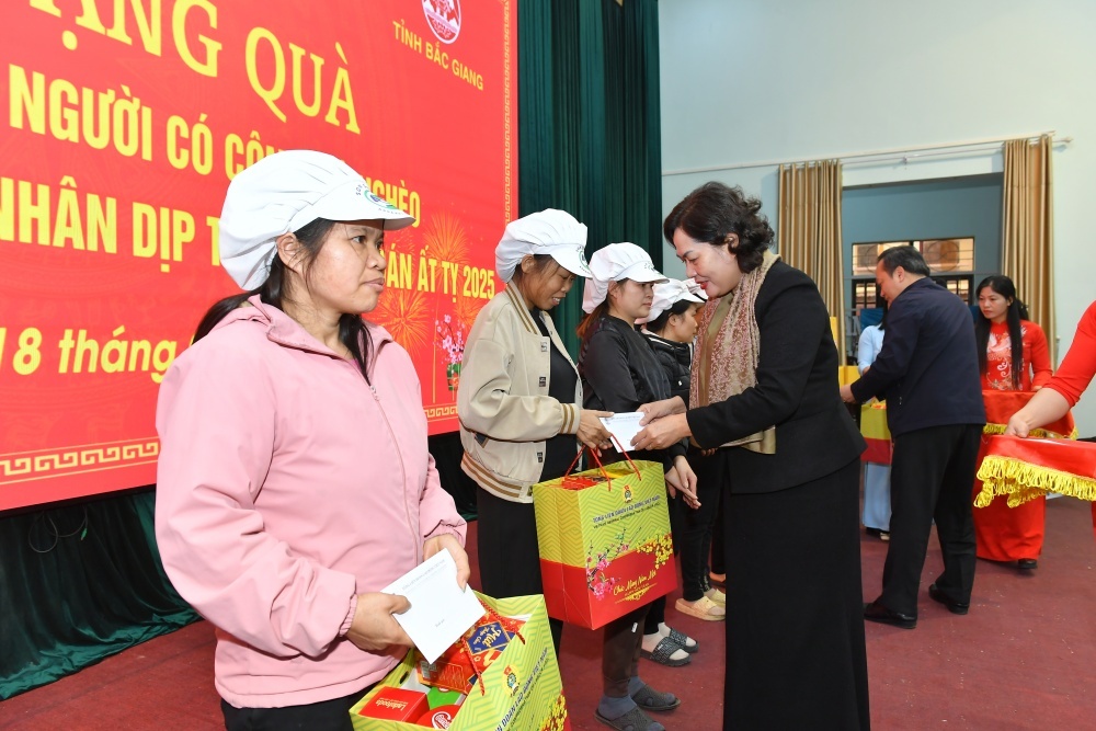 Thống đốc Ngân hàng Nhà nước Nguyễn Thị Hồng tặng quà Tết tại huyện Sơn Động, tỉnh Bắc Giang