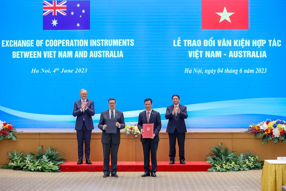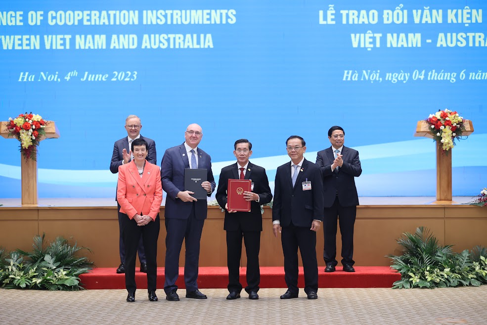 Cụ thể, Bộ Khoa học và Công nghệ Việt Nam và Bộ Ngoại giao và Thương mại Australia (do Đại sứ quán Australia tại Hà Nội đại diện) trao đổi Bản ghi nhớ về hợp tác khoa học, công nghệ và đổi mới sáng tạo.