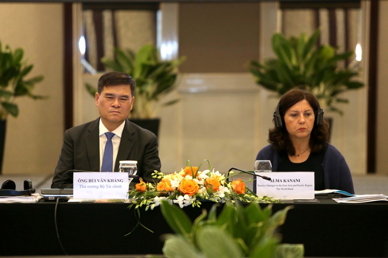 | Thứ trưởng Bùi Văn Khắng và Giám đốc Ban quản trị khu vực châu Á - Thái Bình Dương, WB, bà Alma Kanani đồng chủ trì hội nghị |