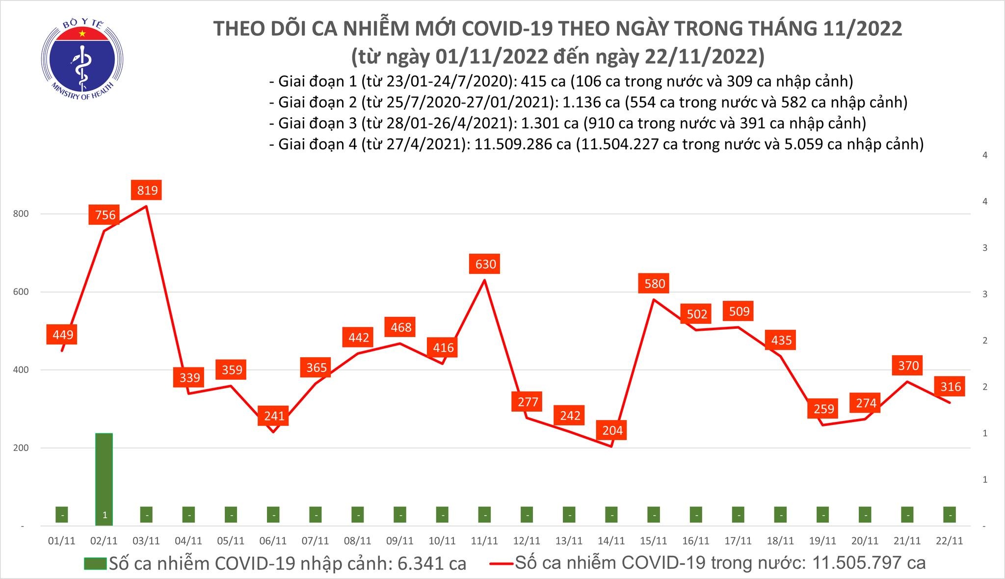 Việt Nam ghi nhận 316 ca mắc mới COVID-19 trong ngày 22/11