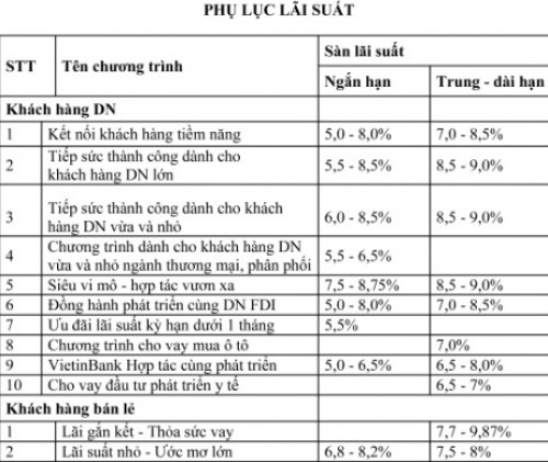 Đặc biệt, VietinBank ban hành phụ lục lãi suất và yêu cầu toàn hệ thống: Triển khai nhanh chóng các chương trình tín dụng có các mức lãi suất cho vay ưu đãi, thấp hơn so với mặt bằng chung.