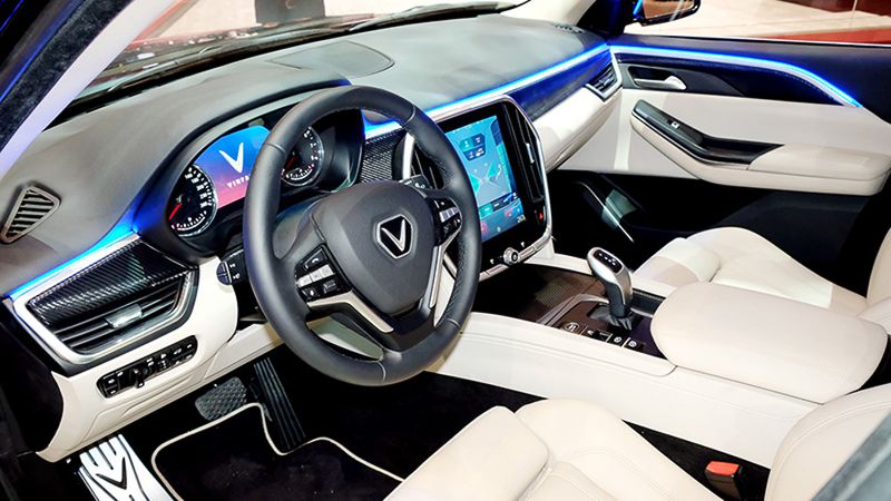 Ở bên trong, nội thất của VinFast Lux V8 cũng được nâng lên một tầm cao mới so với bản thường VinFast Lux SA2.0 khi kết hợp da lộn cao cấp Ultrasuede cùng hợp chất sợi carbon. Toàn bộ phần da phủ bên trong xe đều được chế tác hoàn toàn thủ công bởi những nghệ nhân hàng đầu thế giới.