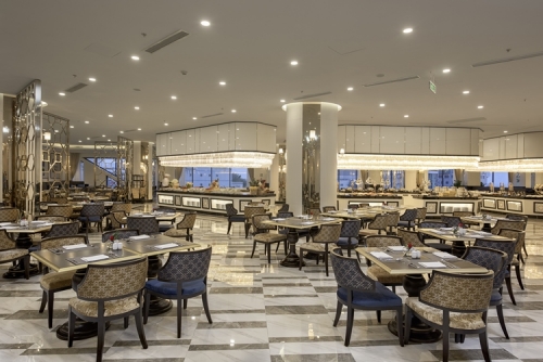 Nhà hàng buffet Amber với sức chứa lên đến 600 chỗ là địa chỉ lý tưởng để mỗi thực khách thưởng thức ẩm thực đa dạng bốn phương