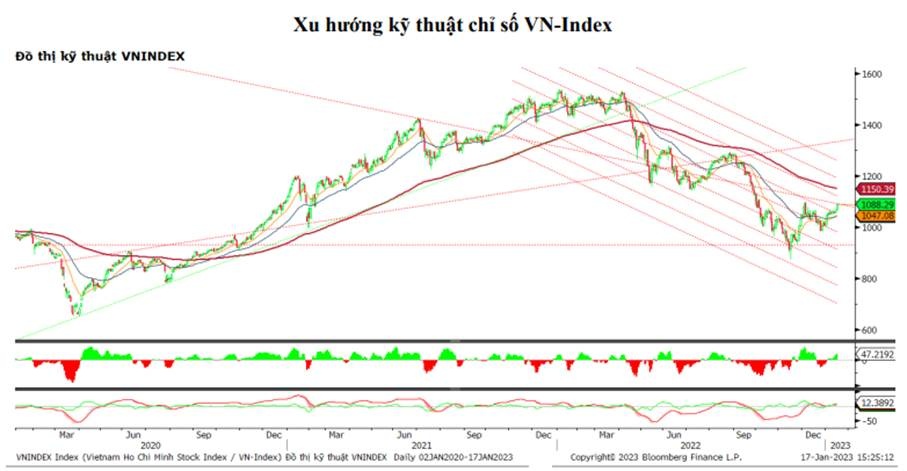Theo VCBS, VN-Index đóng cửa tạo một nến xanh tăng điểm có tính chất phá vỡ xu hướng tích lũy. Thanh khoản cũng có sự cải thiện trong phiên hôm nay, dù vẫn chưa thực sự bứt lên so với những phiên gần đây. Chỉ báo RSI tại khung đồ thị ngày đã hướng lên trở lại nhưng đang tiệm cận mức quá mua, tuy nhiên MACD vẫn đang khá an toàn và củng cố cho xu hướng hiện tại trong ngắn hạn.