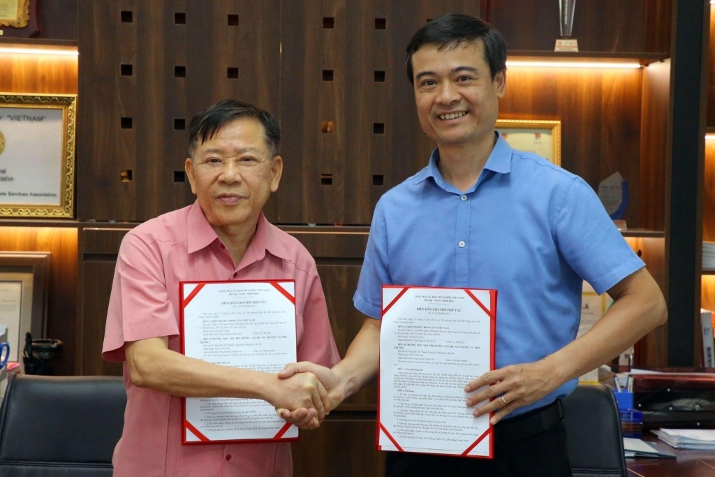 | TS. Nguyễn Văn Khôi, Chủ tịch Hiệp hội Bất động sản Việt Nam ký văn bản thỏa thuận với TS. Dương Thanh An, Hiệu trưởng Trường Đào tạo, bồi dưỡng cán bộ tài nguyên và môi trường. |