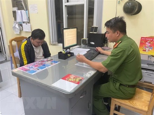 | Đối tượng Từ Thanh Tùng bị bắt giữ. (Ảnh: TTXVN phát) |