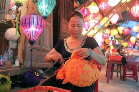 Tập làm đèn lồng phố Hội (Hội An – Quảng Nam). (Ảnh: TG)