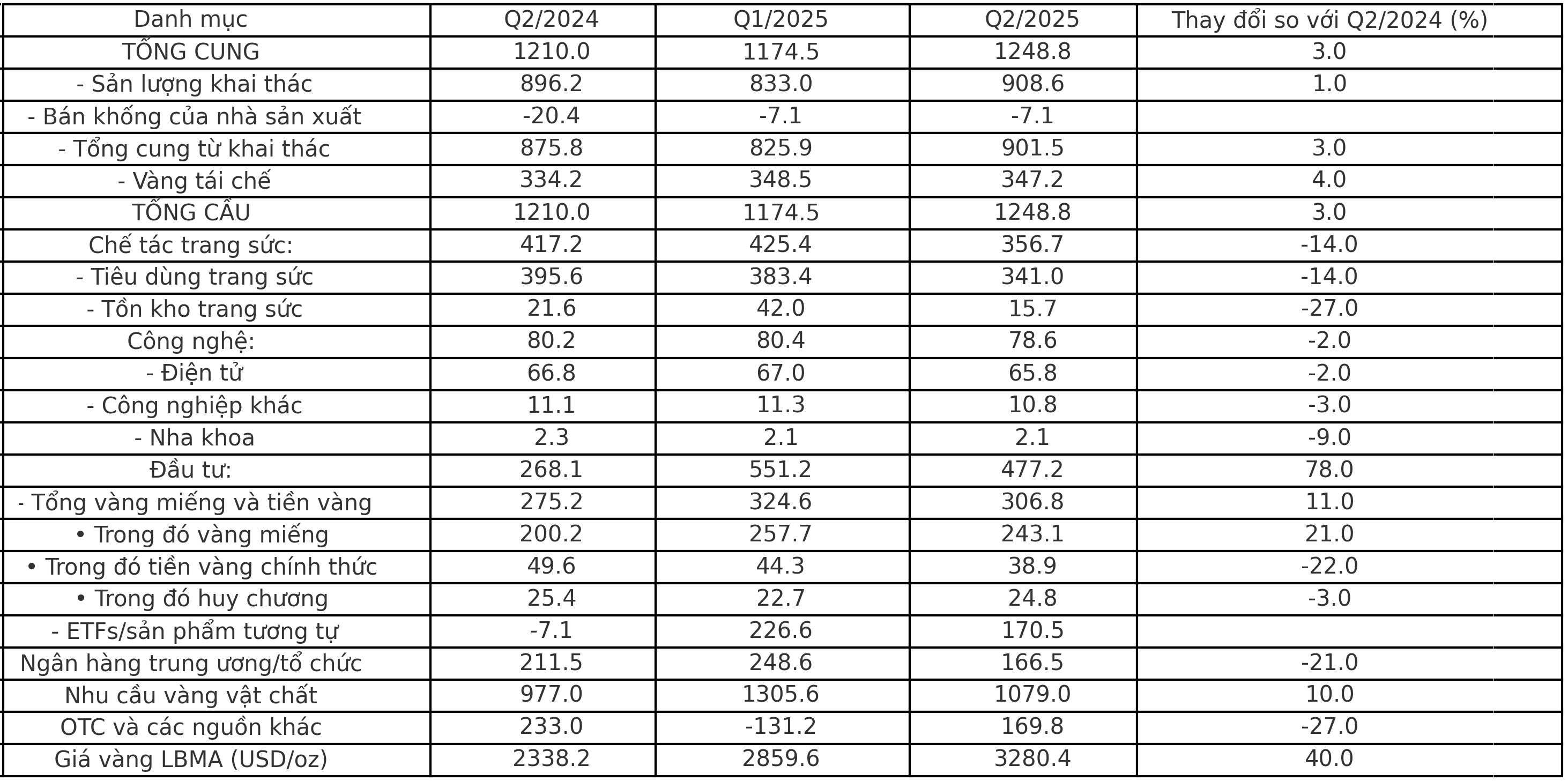 Trong khi đó, nhu cầu từ ngân hàng trung ương, một động lực lớn của thị trường vàng những năm gần đây giảm 21% trong quý II, xuống còn 166,5 tấn. Con số này bao gồm cả lượng mua chính thức được công bố và phần ước tính chưa báo cáo.