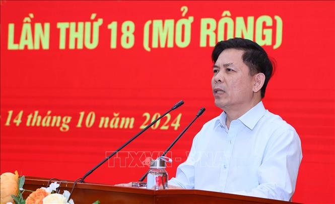 | Đồng chí Nguyễn Văn Thể, Ủy viên Trung ương Đảng, Bí thư Đảng ủy Khối các cơ quan Trung ương phát biểu tại Hội nghị Ban Chấp hành Đảng bộ Khối lần thứ 18 (mở rộng). Ảnh: TTXVN |