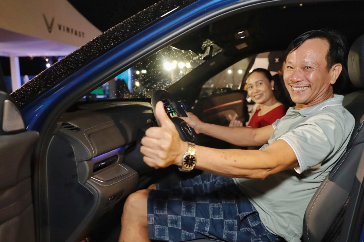 Đơn cử như anh Hoàng Giang, một khách hàng lặn lội từ TP.HCM tới Nha Trang. Sau khi lái thử, anh càng tự tin với quyết định mua VinFast VF 9 của bản thân. Anh là một trong những khách hàng tiên phong đặt cọc mua mẫu xe này thời điểm mới ra mắt.
