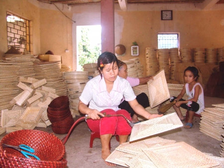 Sản xuất sản phẩm mây tre tại làng nghề Phú Vinh, Hà Nội
